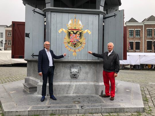 | Raadslid van Bosch Belang [vanaf 1-9-2020]Joep Gersjes [ook rechts] en Paul van de Krabben [Bosch Belang] poseren bij het Puthuis, waarvan de luiken, dankzij Joep woensdagmorgen 9 september 2020, na tussenkomst van wethouder Roy Geers, met enig ceremonieel weer open gingen. foto © Dtv, 9 september 2020. | ![]() |