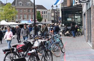 Fietsers, eerst geweerd ivm de coronaepidemie, zijn weer welkom in de binnenstad. Ze mochten vanaf begin juni 2020 overdag niet fietsen in de winkelstraten en moesten de fiets parkeren in de gratis rijwielstallingen.