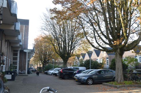 | De Pelssingel waarlangs de serie woninkjes staat gegroepeerd, deels binnen een hofje. foto's © paul kriele, 7 november 2020. |