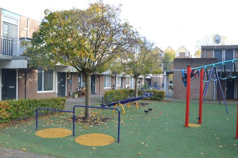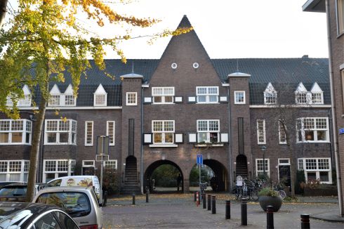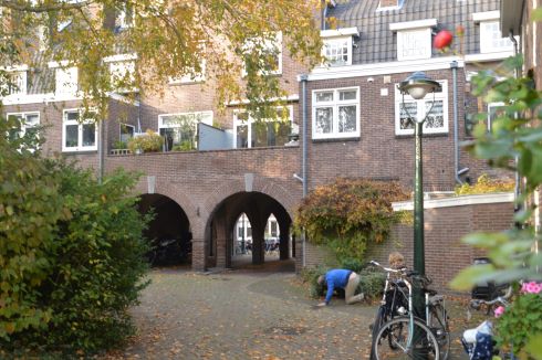 | Niet als hofje benoemd Rietpolderplein, maar zeker wel met de karakteristiek van hofje. foto © paul kriele, 7 november 2020. |