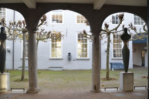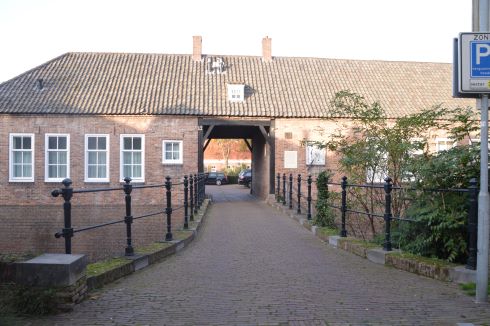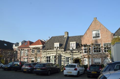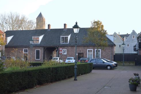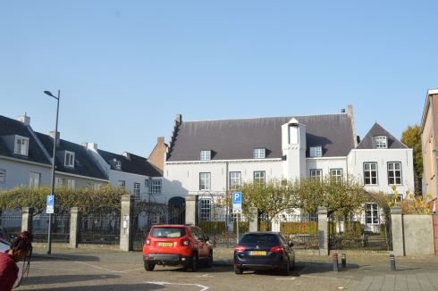 | -Hierboven: Het uit 1950 -na een instorting- herbouwde poortgebouw van de Zusters van de Orthenpoort. -Onder: De huizen rondom een hof. foto's © paul kriele, 7 november2020. |