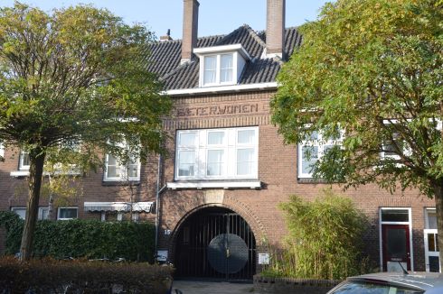 | Een poortgebouw dat de indruk wekt een hofje te omsluiten. Het is een deel van de IJsselsteinstraat. Boven de doorgang zit een muursteen met Beter Wonen. foto © paul kriele, 7 november 2020. |