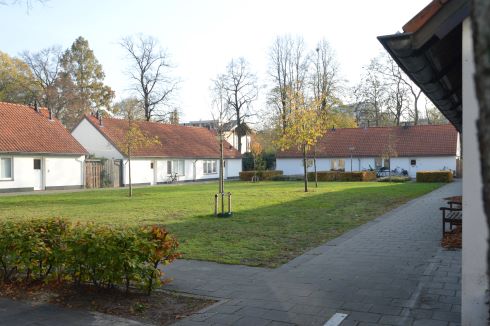 Voor het poortgebouw staan dertien, in 1986 opgeleverde eensgezins woningen, die naar ontwerp van architect Barry Stavert zijn uitgevoerd in houtskeletbouw.