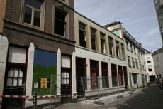 | Doorkijk naar binnenterrein vanuit de Stoofstraat. foto's © marc venrooij 25 en 26 mei 2005.................................................................................. | De gevelrij in de Stoofstraat met o.a. House of Stars . .......................................................................................... |