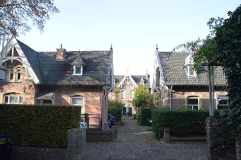 | De in koloniale- ofwel stationsstijl, naar ontwerp van Jules Dony rond 1896 en1897 gebouwde woninkjes .Ze lagen, wat in die tijd nog de Zuidwal heette, net over de Binnediezie die in 1950 werd gedempt. foto's © paul kriele, 7 november 2020. |