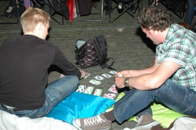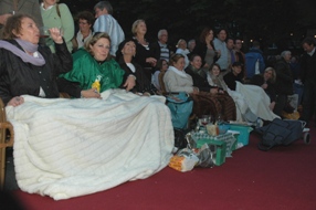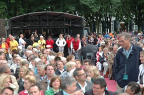| Het plein was goed bezet, de straten enigszins gevuld met staand publiek. dat zich de ene keer van capuchons moest voorzien en later dekens pakte tegen koude. Links onder: Het rijtje 'Adriaans.-Dankers. '.. | foto's © paul kriele, 8 juli 2009. |