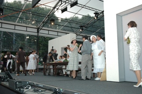 ![]() | Boven: De ontluikende scenes van wie nu de bruiden [zel;fs een man] waren. Tussen de spelers in ook een hoofdrolspeler dr.Caius Björn Arvidsson [op linker foto boven: 3e v.l.] Het begon als een copuleus feest en het eindigt in een bruiloftsfeest. foto's © paul kriele, 8 juli 2009. |