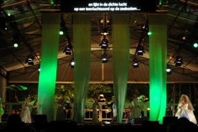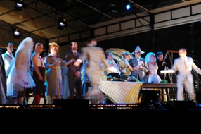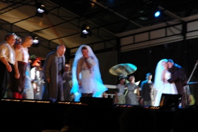 | De eerste scene die zich voltrok in de jaren 50/60-stijl duurde aardig lang en liet een zingend en lallend cafépubliek zien. | foto's © paul kriele 8 juli 2009. |