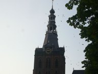 ![]() | In de tweedeacte komt dan het wasgoed in beeld.. Hieronder: wellicht moeilijk te onderscheiden maar de zwermen kouwen en spreeuwen waren weer volop actief. |