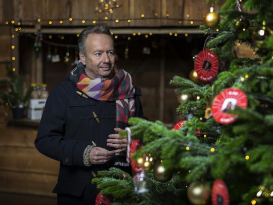 | Joris Linssen met zijn Volkswagenbusje en dit keer bij een mini kerstboom voor het tv-programma 'Joris kerstboom' van KRO/NCRV voor kerstavond 24 december 2020. foto © kro/ncrv-stijnghijsen, december 2020.. |