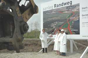 Op het bouwterrein onthulde wethouder Bart Eigeman met een kraan het infobord en schepte gedeputeerde Corsa Steffens mbv een dragline grond in een vrachtwagen, die bestuurd werd door wethouder Willem Kraanen van Vught.
