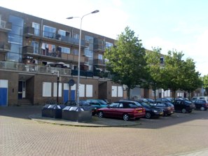 | Het binnenplein -het Van Coehoornplein -krijgt mogelijk de bestemming van supermarkt. De gemeente onderzoekt met projectontwikkelaar 3M en Brabant Wonen of daar een sterke super gevestigd kan worden. Dat maakt het plein levendiger en voorkomt overlast door jeugd of door drugdealers. | foto's © paul kriele, 17 juli 2009. |