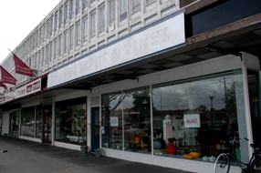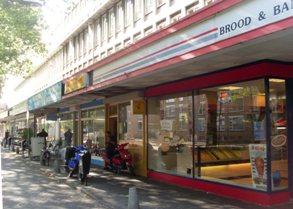 Links boven: Winkelcentrum Copernicuslaan: Een nieuwe branche, een nieuwe ondernemer in een door de gemeente aangekocht pand. Deze zaak in 2e hands spullen voegt wat toe aan de winkelnering op Boschveld, aldus wethouder Weterings. Boven: Aan de zijde van de Copernicuslaan kocht de gemeente 2 panden [nrs. 306 en 310] aan. Aan de zijde Christiaan Huygensweg ook 2 [bakker 123 en de pizzeria 121a]. Links: Op de Christiaan Huygensweg werden de panden van de bakker en de pizzeria door de gemeente aangekocht. Aan beide zijden wordt nog de overkapping verbeterd, kijgen de winkelpuien een verfbeurt en worden de reclames teruggedrongen. foto's © paul kriele, 13 en 19 mei 2009 [boven] en 17 juli 2009[l]. |