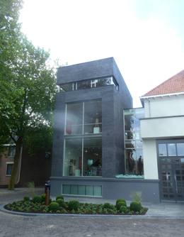 Het naast Restaurant Nobel op het Vughterbastion aangebouwde galerie van Mark Peet Visser, die intussen naar Oisterwijk vertrok. foto © paul kriele, 15 september 2013. |