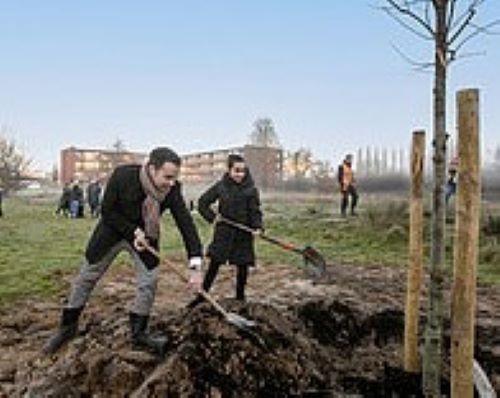 Eerste bomen op laatste schooldag vóór de Kerst van 2021 in Zuid geplant.