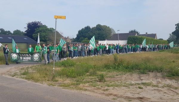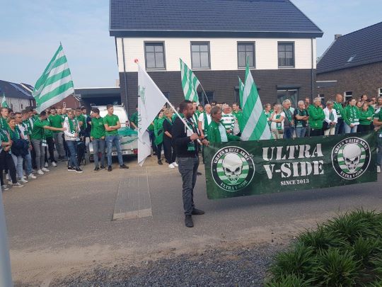 Het lijflied van de V-side, het clublied van EVVC en 'We never walk alone' klonk luid door de Vinkelse straten.
