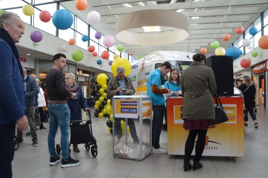 Start WijkBusWest met tombola in Helftheuvelwinkelcentrum