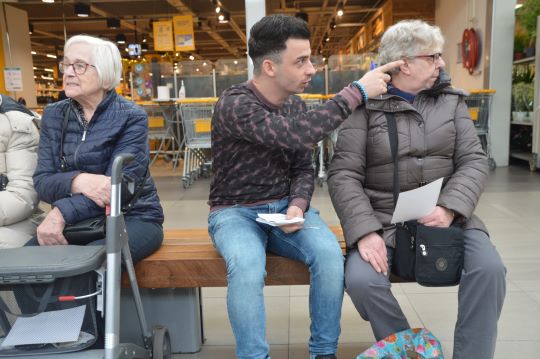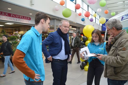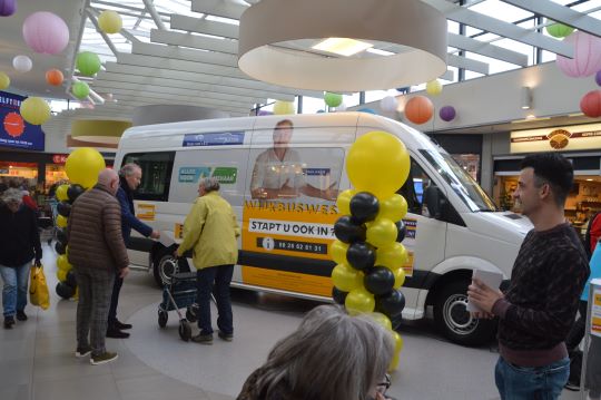Paul Kagie trekt ook wijkbewoners aan die hem kennen van de lokale politiek. ‘Da’s niet erg,’ zegt het raadslid van Leefbaar ‘s-Hertogenbosch, ‘als er maar steeds meer komen’. Maar intussen is hij wel de motor achter deze promotionele actie om eenzame ouderen in beweging te zetten en hen af en toe wat afleiding te bezorgen. De hele middag kwamen winkelende bezoekers langs die even kennis maakten met deze vertoning. Prominent staat daar een opvallende bus in het winkelgebied, omgeven door zwarte en gele ballonnen en een tombola waar je als prijs een minuut gratis winkelen kunt winnen.