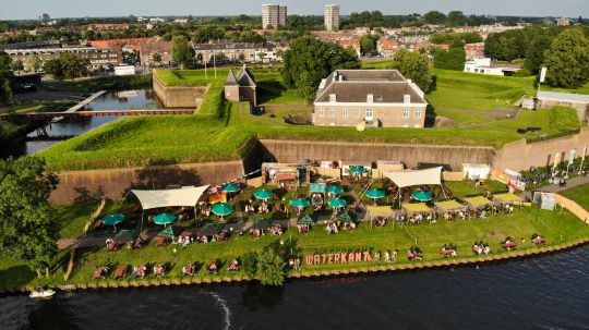 | De terrassen bij de Munteltuinen,langs de Binnenhaven en op de kade bij de Citadel waren in 2021 een groot succes. Bij de Citadel was ook de opening van Bossche Zomer 2021. foto © olaf smit, 1 juli 2021 [foto boven]. |
