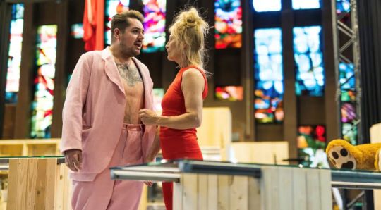 | Jan Wouters als Oberon en Dreya Weber als Puck in de opera Midsummer Night's Dream van Berjaminm Britten. repetitiefoto© brjorn frins. |