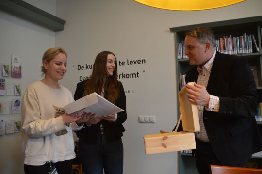 | Lotte Jelleman van Erfgoed en Lotte den Noort van Huis73 hebben de onderwerpen aangedragen en fotograaf Nancy van den Eijnde [niet op de foto] heeft ze gefotografeerd. foto's © paul kriele, 29 maart 2022. |