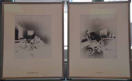 | -Beeldend kunstenaar Miek van Dongen met de kartonnen fotobox [pinhole] waarmee zij de periode van dementie van haar moeder vastlegde. -Hieronder: Twee afbeeldingen uit dat project. foto's © paul kriele, 29 maart 2022. |