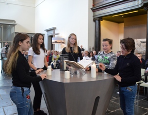 Kerkstraat: De Stille Tocht naar de Casinotuin in 2019 en scholieren van het St.Janslyceum steken in de Grote Kerk vijf kaarsen aan