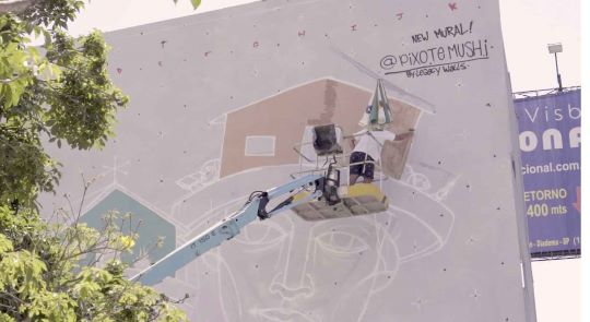 Braziliaanse kunstenaar actief op flatmuur in West I