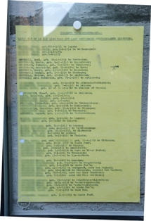 | In het stadhuis hangt een lijst met de namen van slachtoffers van de Tweede Wereldoorlog. |