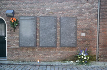 | In de Mortel [achter de voormalige synagoge] hangen plaquettes met 392 namen van Joodse slachtoffers die naar een Duits concentratiekamp werden gedeporteerd. foto © paul kriele, 26 januari 2020. |