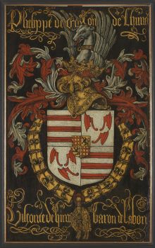 | -Boven: Wapenbord van Philippe de Croy geschilderd door Pierre Coustain. -Onder: Wapenbord van Jean IV de Melun ook van Pierre Coustain. |