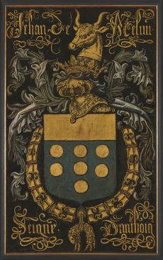 De Vereniging Rembrandt en de stichting Vrienden van het Noordbrabants Museum hebben dit mogelijk gemaakt. De borden zijn wapens van ridders van het Gulden Vlies en gemaakt bij gelegenheid van het bezoek aan 's-Hertogenbosch van aartshertog Maximiliaan van Oostenrijk en zijn echtgenote Maria van Bourgondië, in 1481, Bij dat bezoek waren zij ook aanwezig op het kapittel [een zitting in de Sint Jan met tal van edellieden van hoge ridderordes uit Bourgondische gebieden] in de Sint Jan. Daar toonden zij trouw aan de aartshertog van Brabant. Toen, op 20 mei 1481, is de zoon van Maximiliaan en Maria, als driejarige knaap tot ridder geslagen [van de Orde van het Gulden Vlies].