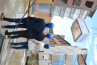 Na deze toespraken gingen de betrokkenen bij de bouw naar ‘de rode knop’ om daar een cabine in werking te stellen die door de bouwkraan naar de schorsteen op het dak zou worden gehesen als teken van het bereiken van ‘het hoogste punt. De bijeenkomst op het binnenplein van de bouw werd afgesloten met een drankje en een hapje. © pk, 15092022.