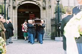 | De manschappen van de politie Brabant-Noord dragen de baar tot voor het altaar. © paul kriele, 8 februari 2006. |