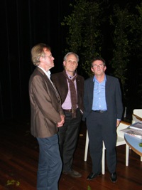 | Avondeditie van 6 oktober 2009. Groot talent in huis, maar weinig creativiteit om daaruit iets los te peuteren. Foto's boven rechter foto Erwin Olaf [l] linker foto .Tonny van der Meulen [columnist en oud-hoofdredacteur Brabants Dagblad] Jan Tromp en Pieter Boertjes [hoofdredateur De Volkskrant]. foto's © herman van boxtel, 6 oktober 2009. |