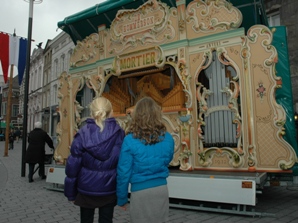 | Midden in de foto, Frans van Rixtel die op 27 december 2009 84 jaar wordt, is de zoon van Anna Dupuis. Achter hem zijn dochter [l] bij de ijscokar die jaren bij Het Huisgezin [tegenover de Moriaan] stond. | Dankzij onder meer de Heesbenen was de stad een orgelstad. De 5e generatie zet die traditie voort. Op de foto een Hommerson Mortierorgel. |