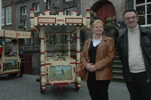 | Een Bosschenaar, maar de in Tilburg wonende Theo Heesbeen en echtgenote. Theo van de 5e generatie Heesbeen- restaureert orgels. Theo is een nazaat van 'de Lange Daan' rechts op het schilderij van 1858. Bij de koop van een auto wist Theo ook een van de ijscokarren van De Rul in bezit te krijgen. |