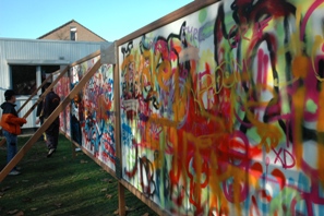 Zondag 8 november 2009 was de eerste werkelijke graffitydag. Zondag 15 november 2009 volgt er nog een. Dan is het kwarwei klaar en gaat er een coatinglaag over de voorkant van de wand. De achterkant wordt telkens schoongemaakt zodat de jeugd zich daarop met spuitbussen kan blijven botvieren.