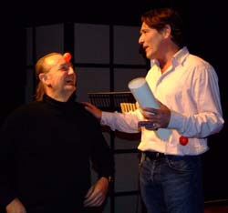 | Pierre Bokma met toneelmeester en 'stadsdichter' Gé van Berkel. foto © gerard monté, 16 oktober 2006. |