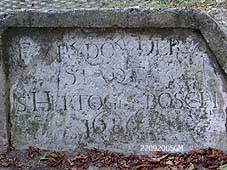 Rechts de replica van een 3,5 eeuw oude grenssteen die ligt in de Jasmijnstraat in Hintham. De oude links wordt zorgvuldig bij de BAM bewaard. foto © gerard monté, 20 april 2006 [r.] en 20 februari 2005. |
