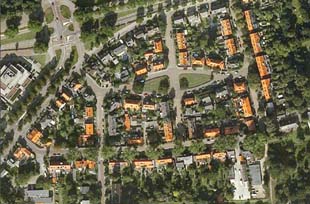 | Een indruk van boven van de wijk, die links door de Graafseweg en bovenin door Hintham, wordt begrensd. Rechts, schuin omhoog, de Jasmijnstraat. Onderin de Boterweg. | ![]() |