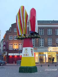Zondagmiddag rond 14.oo uur, maar meestal uitlopend naar drie uur in verband met de lange intocht, wordt Knillis, de mascotte van Oeteldonk, onthuld. foto's © paul kriele, 19 februari 2004/12.30 uur