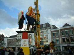 Op bovenstaande foto's de Markt in voorbereiding voor carnaval 2004