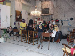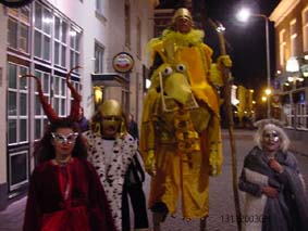 | Bewoners van de planeet Froq op weg naar het Bal masqué in het Palazzo. foto © gerard monté, 13 november 2003. |