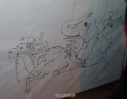 | Links een ontwerptekening en rechts wellicht de uitvoering daarvan, tenminste aan de olifant te zien.. | foto's © gerard monté, 18 december 2004. |