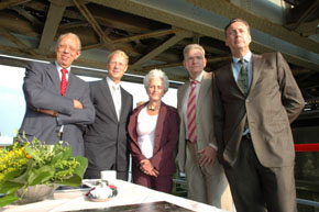 Vlnr Henk de Heus, vader van de directieleden Co [2e v.l.] en Koen [niet op de foto], minister Jacqueline Cramer [VROM], wethouder Geert Snijders [2e v.r.] en gedeputeerde Paul Rüpp [r.] . |