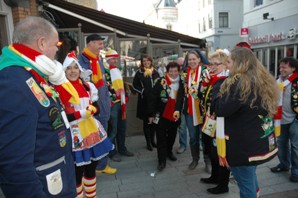 | De Boer van de vorige foto [3e van l.] is herenigd met de familie Schoot, ofwel CV de Mafkikkers. vlnr o.a. Bert Schoot, midden in diens vrouw Annie met rechts naast haar [met paarse sluier] Mariska Alosery die op 11 februari 2010 in ondertrouw ging met de zanger Chris Schoot [uiterst rechts]. Rechts naast Mariska, ofwel de 3e van rechts Hannie, de moeder van Mariska. Op de foto ontbreken Gert-Jan Castelijns [zwager van Chris] en diens dochter Frederique. |