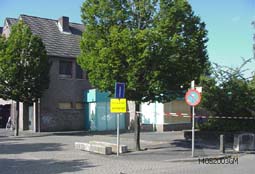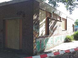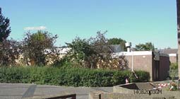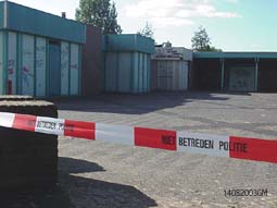 | Ook de voormalige basisschool de Eenhoorn, inmiddels verhuisd naar de Haren, werd afgesloten van de buitenwereld. | foto's © gerard monté, 14 augustus 2003. |