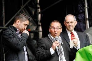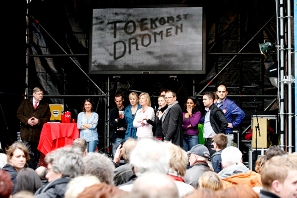 | Een debat over de vrijheid om zich uit te kunnen spreken met oud-burgemeester van Amsterdam Job Cohen en wethouder Bart Eigeman. Cohen gaf scherpe antwoorden op allerlei politieke vragen zoals hij zelf zei dat dat eigenlijk niet de bedoeling was, maar toch....! Wethouder Bart Eigenman voelde zich - zoals altijd - als een vis in het water. En toonde zich lichtelijk vereerd naast deze Hollander -een man van gewicht - te kunnen staan. foto's © fotokracht.nl, 5 mei 2010. |