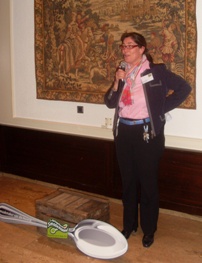 Boven: Gastvrouw Karin Rademaker van Hotel Central en links Mechtild Stultiens van Artishock, de organisator van de Meet & Greet in het 'Hotel van de Smaak'. Links: Vanaf een wankele zeepkist konden de aanwezige smaakmakers hun product of activiteit promoten. foto's © paul kriele, 7 mei 2010. |